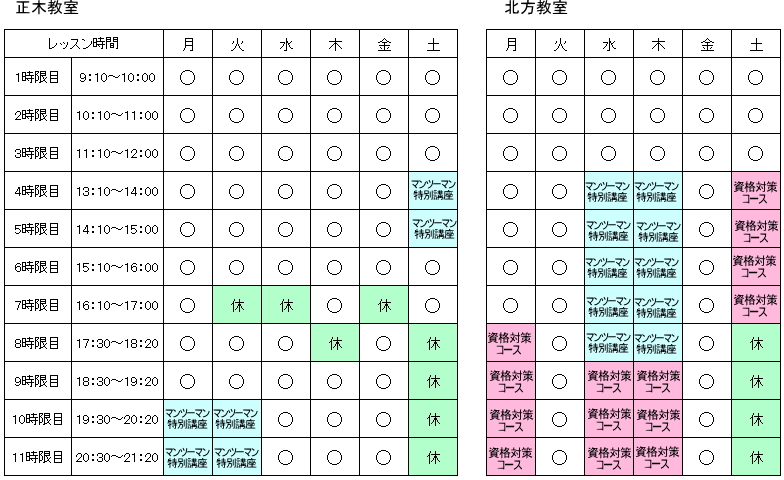 ★通常レッスンコースの生徒様は資格対策の時間以外でご予約いただきますようお願いします。